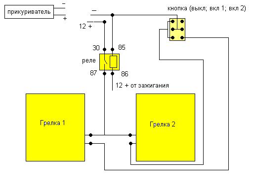Есть провода сечением 4,5 и 2. Какие сюда лучше протянуть. Есть кнопка от ГАЗа "обогрев сидений" 3 позиции (выкл; в 1 ой замкнута левая пара контактов; во 2 - правая(всего контактов 6 + 2 на лампу подсветки). Хочу чтобы в первой включалось 1 сиденье, потом 2. Если всё это подключить к прикуривателю его проводка это выдержит? а если его (прикуриватель) случайно включат? В магазине предлагают 2 вида клемм, для паяния и обжимные с изоляцией. Что лучше использовать? Колодки для клемм нужно дополнительно изолировать?