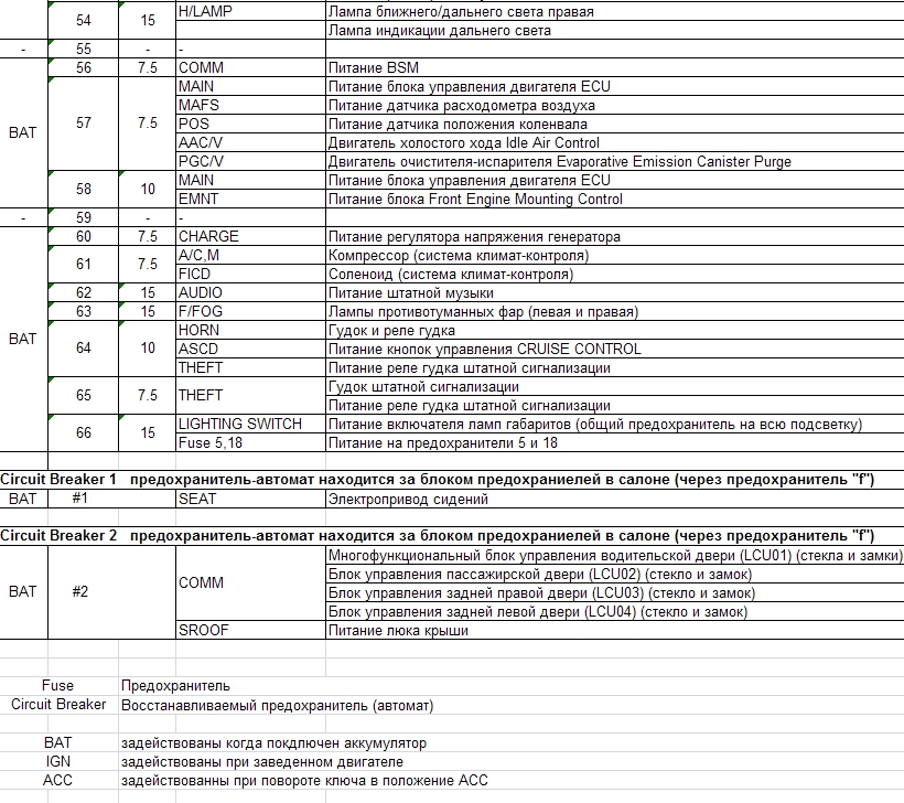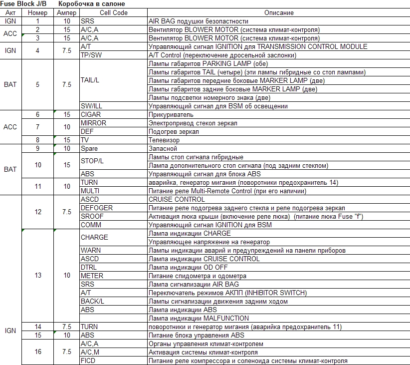 Maxima A32. полетел прикуриватель (не работает). решил сверить свои предохранители с этой таблицей. вот, что получилосьTrusishka писал(а): Вот, покопавшись во всех доступных мануалах, я составил таблицу предохранителей для A32.