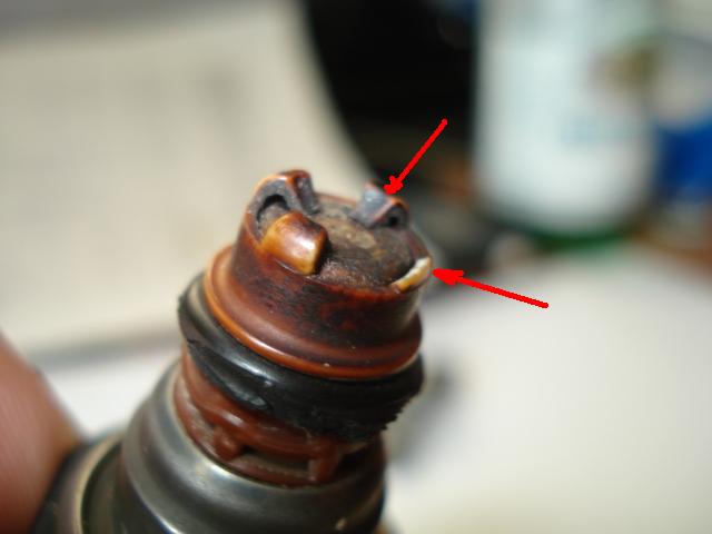 Всем здрасте. Столкнулся с проблемой которая может привести к дорогостоющему ремонту двигателя (я писал в теме УДАР В ДВИГАТЕЛЕ). В мае месяце на форсунке порвалось резиновое уплотнительное кольцо, бенз потек в цилиндр ручьем и произошел гидроудар, тогда все обошлось (мотор это пережил без последствий). Тогда я еще думал что навернулась сама форсунка. Когда неделю назад мотор затроил, снял уже другую форсунку, а на ней расслоилось нижнее уплотнительное кольцо (синяя стрелка), слава богу что до гидроудара не дошло. После этого понял что форсунки непричем, а вот резиновым кольцам на них приходит писец.