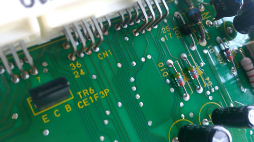 Последовательность действий такая: разбираем консоль, видим внизу за пепельницей этот самый блок (у него разъемы с двух сторон, спереди два, сзади три), отворачиваем три гайки крепления этого блока, отключаем разъемы и вытаскиваем его на свет. )) Далее по периметру четыре винтика, их выварачиваем и снимаем крышку. Перед собой видим две платы, соединенные маленьким шлейфиком из 4(или пяти) проводов. Вопщем на плате, где два разъема, с обратной стороны соединяем два контакта 24 и 36, они прям друг над другом.