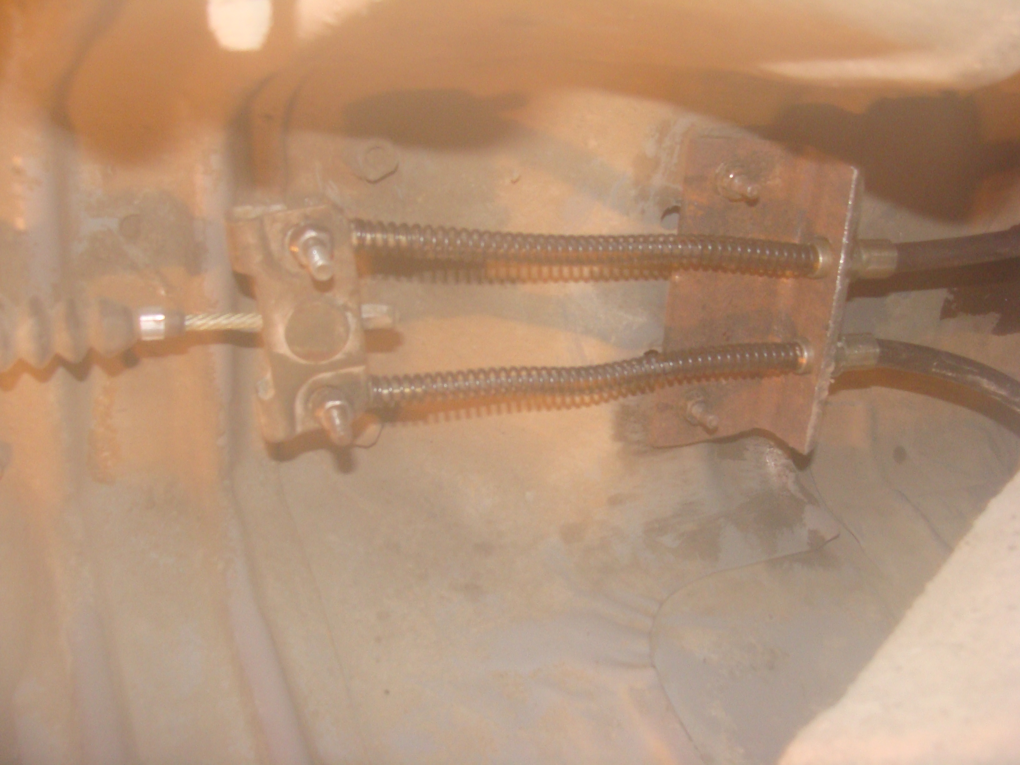 А можно и ту часть, которая подходит к суппорту сфотографировать? Потому что я не понял зачем надо было трос разворачивать наоборот, поскольку на "восьмёрке" та часть, которая сфотографирована, устанавливается на задние тормозные колодки, поэтому и пружины возвратные там стоят. :shock: