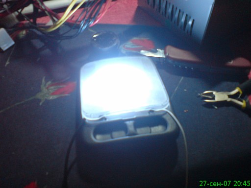 Можешь подробно рассказать что за мощность у светодиодов? резисторов? и какая схема подключения? и как получилось оставить плавность отключения?Trusishka писал(а):Немного переделал светильник.