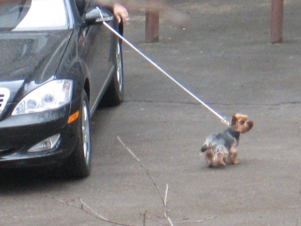 Мы с ним проходили курс ЗКС (см. фото выше, это где за жопу надо кусать). Там надо валить цель с ног, разрывать все эти ватные тряпки и драть жопу (если оттащить или команду "ФУ" дать не успел). Вот мне что бы не бегать много, я вот так, поводок из окна и 30 км/ч. Так этот кобель лапой так может ударить, что не подумаешь о нем такого.