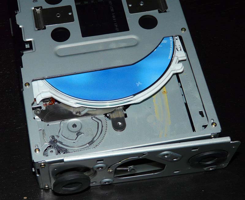 Перед снятием чейнджера нажал на кнопку eject на блоке с дисками, он выехать отказался, вроде пытается, но не может. Короче снял сей замечательный агрегат, все заняло 5 минут, принес, разобрал. Смотрю вот на него и не понимаю мальца. На фото постарался показать. Из 6 ячеек под диски у кассетника 4 задвинуты внутрь него, а две выдвинуты наружу, вот только не с той стороны где головка оптическая считывателя, а с другой, через металлическую перегородку. Я практически уверен, что так быть не должно, но может чего-то не знаю, подскажите?..