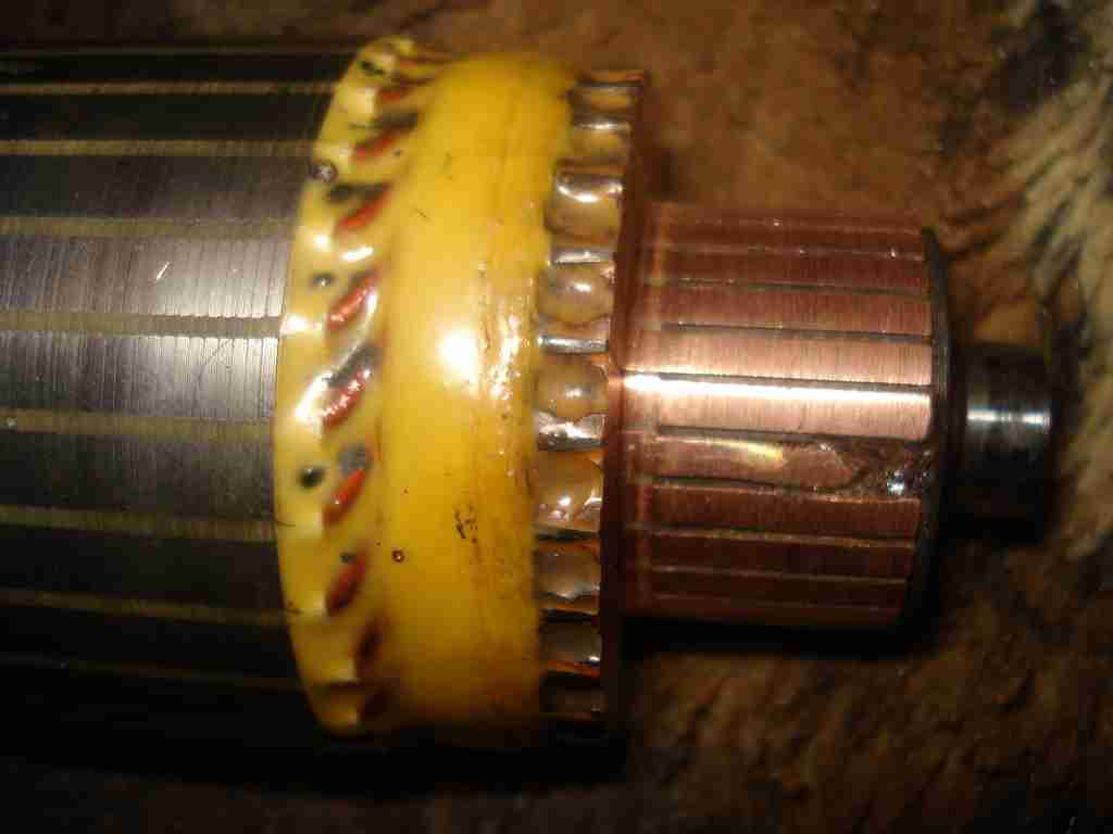 якорь целый даже выработки почти нет)))обмотка на крышке тоже целая)))(но были небольшие задирчики и царапки на якоре),но я его отдал токарю и он мне его чуток проточил.
