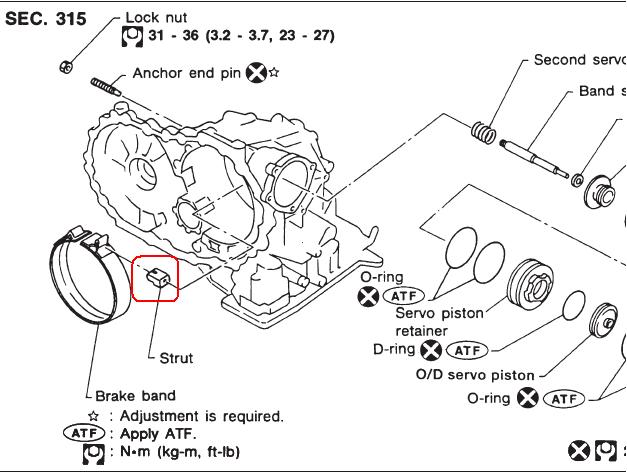 Эта деталь в коробку упасть не должна, я тоже по этому поводу переживал. Но после консультации с "автоматчиками" снимал и ставил этот узел дважды.DAKalimov писал(а):Автор ответьте на вопрос - как Вы зафиксировали деталь, которая является посредником между тормозной лентой и штоком сервопривода? Она должна была упасть внутрь коробки.