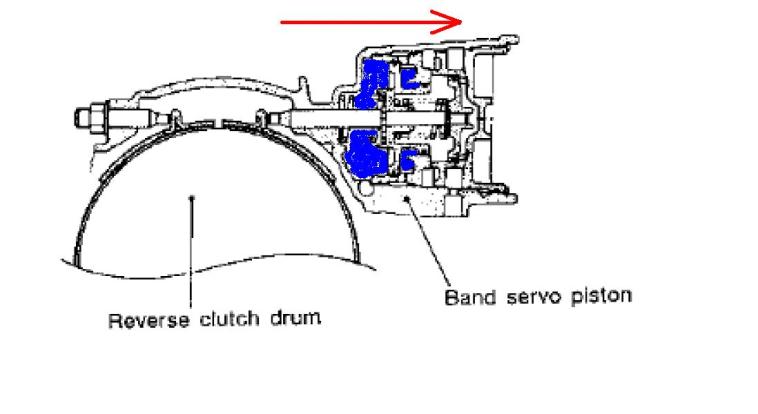 Сам шток сервопривода давит на тормозную ленту, т.е. блокирует тормозной барабан на 2-й и 4-й передаче. Но для их включения использует разные гидравлические поршни.