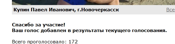 Если вам не сложно то проголосуйте за меня перейдя по ссылкеhttp://www.rostov.aif.ru/rate/rating/544. Дело несложное, надеюсь на Вашу помощь. З.Ы Проголосовать нужно за Купина Павла Ивановича. Заранее благодарен!!!