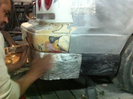 обвес пришлось буквально выпенивать, так как от аккорда задняя накладка естественно не такая длинная, но стекловолокно и полный порядок, кузов с бамперами зашпаклёван, фальш панель выкинул, заварили листом, под замочек вырез сделали.