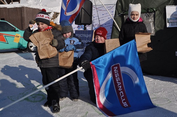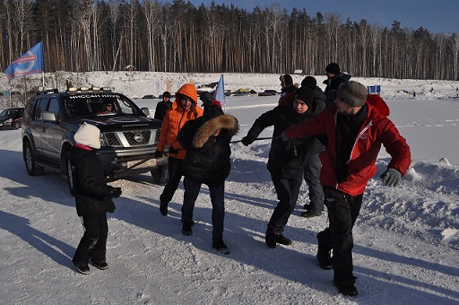 Для детей и активных взрослых на площадке перед теплым шатром была конкурсная программа: викторина, рисование на снегу, футбол, перетягивание каната, для сильных телом и духом была возможность потягать 24 килограммовую гирю - за участие в конкурсах все получили небольшие призы от Ниссан клуба.