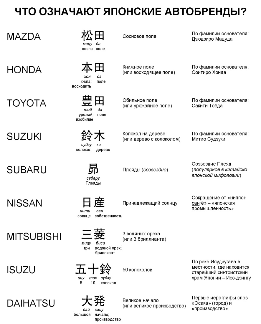 Перевод названий японских марок авто (может баян)