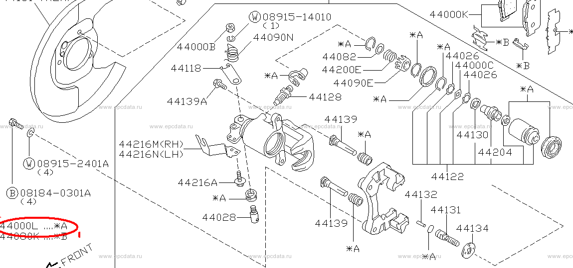 Nissan AY620-NS004 Ремкомплект сальников дисковых тормозов (возможно подойдет этот, но надо смотреть по VIN коду, бывают разные диаметры поршней)