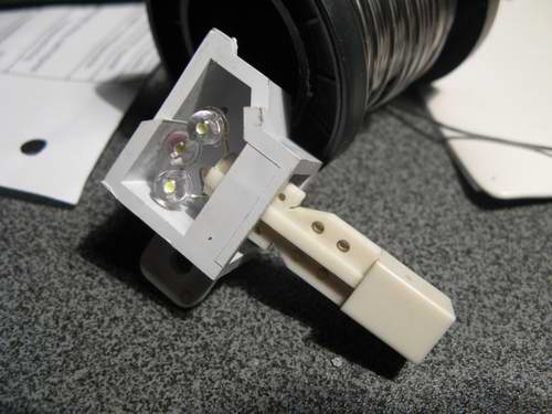 Да. Я как то на радостях взял и запихал туда 3 диода. Хотя толку никакого, можно и один поставить. Косвенно второй причиной установки 3-х диодов было то, что у меня в наличии были резисторы только на 330 Ом, а для одного моего диода нужно резистор номиналом минимум 570, но вообще можно было поставить один диод и два резистора. Короче, предварительно я не проверял как оно будет светить с одним и с тремя диодами. Спаял, воткнул, установил, а потом понял, что все обошлось бы и одним диодом.