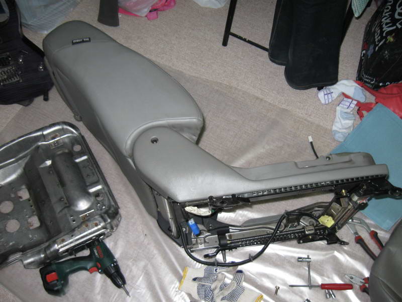 Разборка крайне проста - для начала нужно открутить 4 винта, крепящих сидения к кузову. Снимаем подголовник и опускаем спинку на 45 градусов. Далее перед отключением разъемов, нужно скинуть плюсовую клемму аккумулятор минимум на 3 минуты, чтобы блок эйрбега не зафиксировал ошибку (если подушек нет можно пункт опустить). Отсоединяем все разъемы, и вытаскиваем сидение через заднюю дверь. Остальное делается в домашних условиях. Отщелкиваем кнопки регулировки сидения, и декоративную пластику под ними. От подушки сидения нужно отсоединить все промежуточные крепления проводов. Далее откручиваем 4 винта головкой на 12, которые крепят сидушку к каркасу кресла. Далее отцепляем стяжки обивки по периметру. После этого самое сложное в процессе - нужно кусачками срезать кольца, крепящие обшивку к металлическим стержням в полиуретане сидения. Не бойтесь это делать, второй раз их все-равно проблемно использовать, при сборке они успешно заменяются нейлоновыми стяжками. Все, кожа почти освобождена. Остается оторвать от среднего крепления - там что-то типа липучки, смело, но аккуратно отрываем его. И видим выгоревший элемент подогрева. Отрываем его аккуратно, чтобы не повредить сильно полиуретан. После этого вставляем стяжки на месте крепления колец, и обезжириваем полиуретан. Т.к. он пористый, после обезжиривания нужно дать ему просохнуть. Пока сохнет - нужно доработать нагревательный элемент - сделать прорезь, чтобы при сборке можно было липучку кожаной обшивки назад прицепить. Прорезь делать аккуратно - чтобы он был строго между нагревательными нитями. Теперь все готово - убираем защитную пленку с нагревательного элемента, и приклеиваем его на полиуретан. Все готово - ставим назад обшивку, аккуратно затягивая стяжки, откусывая излишки кусачками. Далее аналогичную процедуру проделываем для спинки, там посложнее, я полностью не снимал обшивку, просто отогнул так, чтобы подлезть к нагревательному элементу. Все также как на сидушке - кольца и липучка. Далее электрическая доделка. Если хотите оставить штатные кнопки - то можно просто подключить емелю вместо штатных элементов, и оставить ту же логику работы - слабый нагрев - последовательное соединение, мощный нагрев - соединение в параллель. Я решил сохранить многорежимный нагрев, поэтому модифицировал схему - для того, чтобы прокинуть нагревательный элемент к кнопке - использовал желтый и белый провода, они идут от сидения к штатной кнопке. К кнопке также подходят +12 В при включении зажигания и масса. Т.е. все нужные провода для подключения кнопки из комплекта Емеля, соответственно с проводкой ничего не нужно колхозить кроме установки самих кнопок. После сборки сидения - протестировал его. Радует то, что теперь нет бредовой функции, которая включает подогрев только при наличии на сидушке жопы. При включение емели на полный нагрев в комнате, тепло ощущается уже через 30-40 секунд.