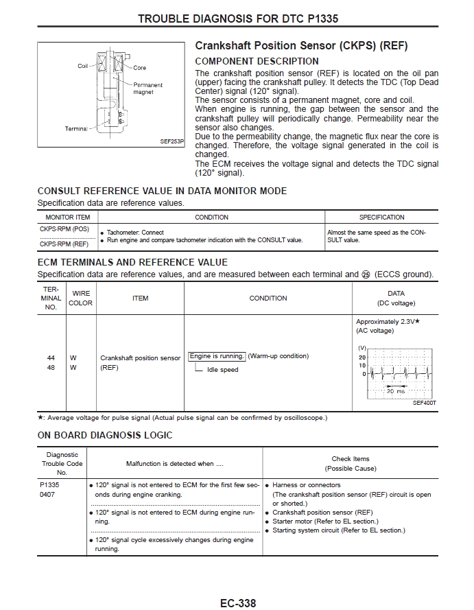 сигналы с него идут в ЭБУ, он считывает обороты с сигнальной пластины шкива, в общем объяснять это долго, в дух словах не получится, да и главное, как устранить траблBupyc писал(а):..Диагностика показала:код ошибки 1335(Датчик положения колен вала),Угол опережения зажигания -9.Так каким образом датчик не дает набрать обороты непонятно...