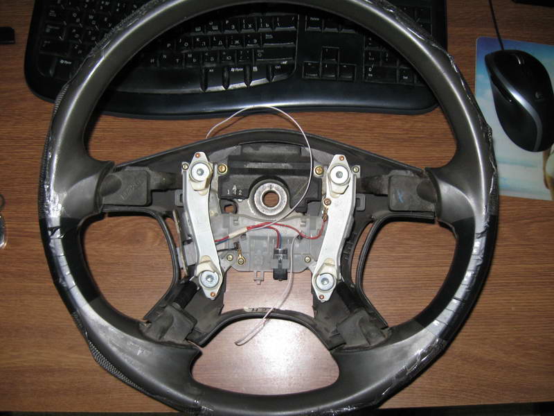 Снятие и разбор руля описывать не буду, так как на форуме уже есть похожая тема. Сразу оговорюсь, что у меня нету круиза, поэтому у меня в spiral cable имеются свободные линии, которые я и задействовал в качестве линий питания.