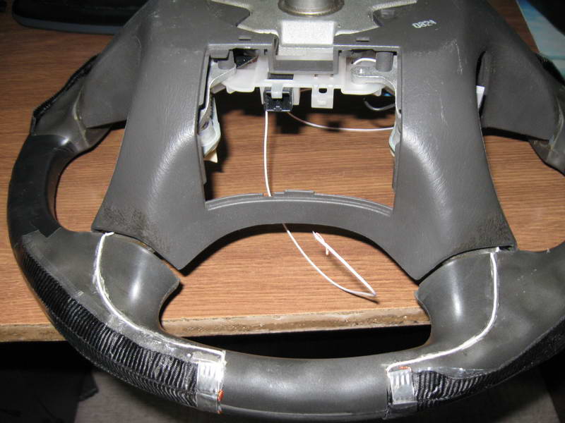 Кстати, в тех ссылках, что я выложил, народ немного не доволен был простой приклейкой нагревательных элементов, говорят, что через кожу видны выступы, что бы этого избежать - прорезали канавки в руле под нагревательный элемент ...