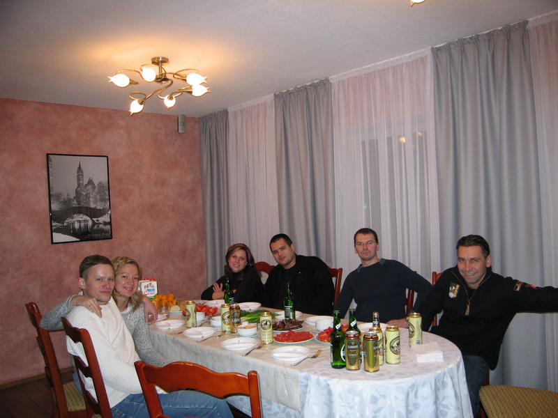 напишите поименно или поНИКово кто сидит : Андрей Коробов, рядом с ним очевидно жена Наталья, а дальше?самые голодные уже за столом, стучат ложками, ждут шашлык))))