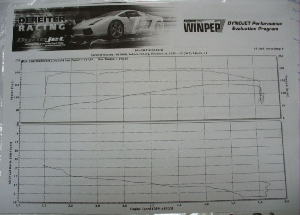 Но результат всё-таки не плох, мощность на колёсах 137,97 л.с. и крутящий момент на колёсах 195,82 Нм. Если плюсом прибавить потерю мощности на трансмиссию, то приблизительно получим стоковый показатель мощности на маховике. Если исправить недостатки по п. 1-5, думаю полученная мощность превышала бы на 5-7% стоковый показатель, всё-таки коллектора ПайсСеттер и выбитый катализатор дают прибавку мощности. А если дополнительно установить ФНС и прямоточную банку, то мощность возросла бы относительно стока на 6-8,5%. В любом случае результатами я доволен и будет потом (после турбы) с чем сравнивать. Ну и немного фото и моего видео с диностенда