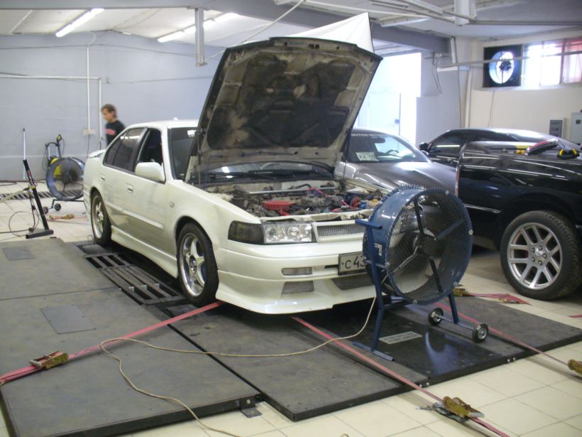 ТВС (топливо-воздушная смесь) - правильный состав для мощностных характиристик начинает формироваться с 2600 об/мин (13:1) до 5400 об/мин (11:1). Далее крутить движок смысла нет, т.к. форсунки открываются на постоянку и непрерывно льют бензу до отсечки 6000 об/мин. Смесь получается сильно богатой, максимум 10.2:1. Горшки тупо заливает бензином. Тем самым программа топливных карт предохраняет двигатель от возможной детонации и продлевает тем самым жизнь двигателю. Происходит потеря мощности и крутящего момента, причем крутящий момент начинает плавно падать после 5000 об/мин, а мощность падает после 5500 об/мин. Вывод: крутить мотор до отсечки глупо, т.к. это не даёт ровным счётом ничего, кроме бензина в трубу. Наиболее оптимальным интервалом переключения передач, при интенсивном разгоне, будет 5000-5500 об/мин. А для передвижения с целью экономии топлива является интевал от 2000 до 2500 об/мин. Это данные моего двигателя, но и для других VG30E, я думаю, ситуация будет аналогичной.