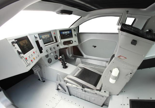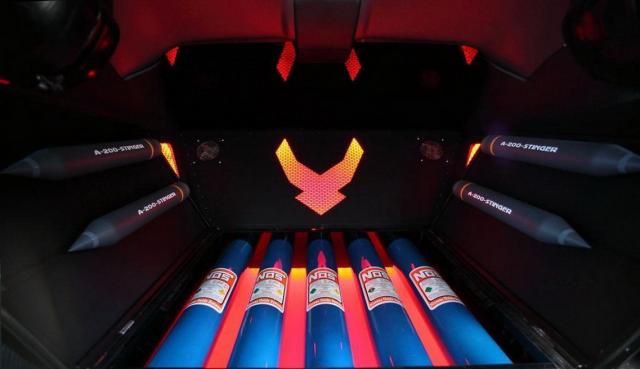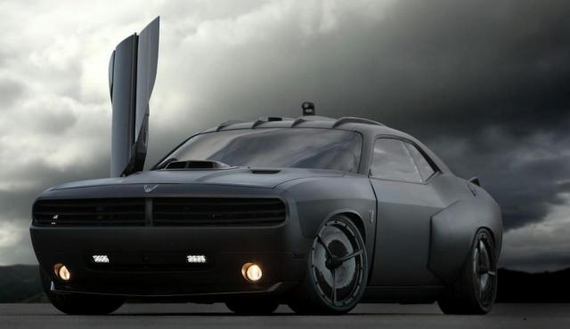 Второй автомобиль, Dodge Challenger, оформили в стиле истребителей Stealth - матовая окраска, авиационные мотивы в оформлении аэродинамического пакета. Внутри вместо привычного автомобильного салона - настоящая рубка пилота истребителя. Приборная панель потеряла всякие намеки на дизайн - все подчинено функциональности. Два штурвала, рычаги управления тягой, прочие кнопочки-переключатели, словно снятые с тренажера для начинающих пилотов. Проект получил название Vapor.
