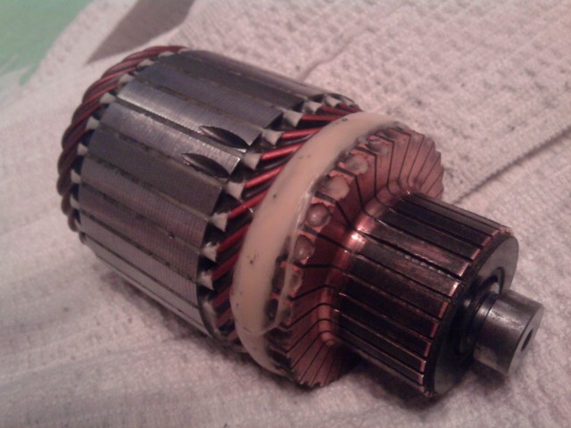 Якорь щеточной машины на замыкания проверить не очень просто - делается специальным "прибором для проверки якорей" - то, что звонятся ламели и не звонится на корпус, хорошо, но 100% уверенности не дает - надо разрисовать схему обмотки,я честно говоря не знаю, на нашем это можно, или не видно нифига.... Еще надо смотреть состояние коллектора - если без износа и задиров, можно использовать дальше, иначе - протачивать и шлифовать. Имхо - если коллектор целый, внутри между петлями нормальные машинки обычно не коротят, это ж не от КРАЗа же дурында :wink: