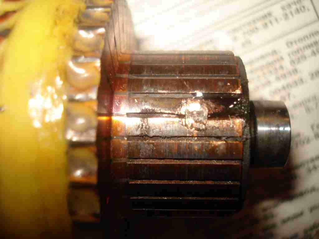 Прикольно, увидел, какими должны быть новые щетки. Я тут вчера не смог завестись. Предшествовало этому то, что последний месяц при заводке в динамиках были слышны в/ч шумы. Думал, что-то с заземлением усилков, ан нет, видимо в стартере дуга была и наводки давала. Вот фото - плюсовых щеток нет вообще и якорь слегка погорел. Кстати, интересно, почему минусовые износились меньше??