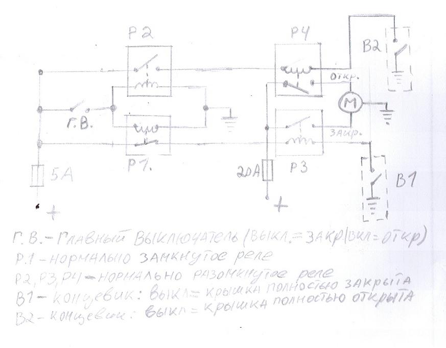 Кстати, теперь до меня доперло что значат буквы "У" у тебя на выводах реле! Согласен схема работать будет, вот только позволит ли мотор по твоей механической схеме приподняться крышке на столько, что бы концевик в замке сработал?