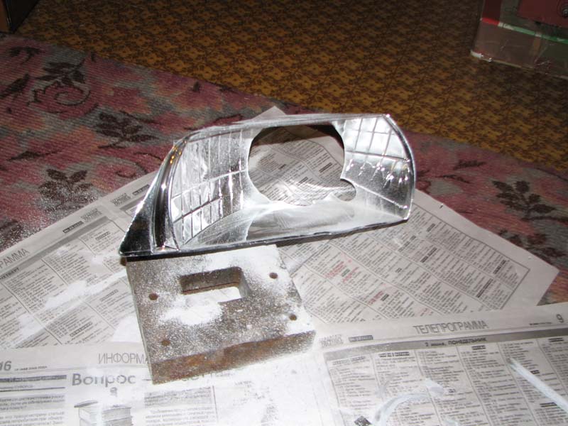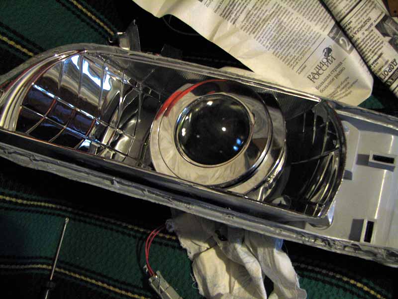 света и крепим линзовый модуль к отражателю (я крепил комбинированным методом - клей + усилитель-накладка).