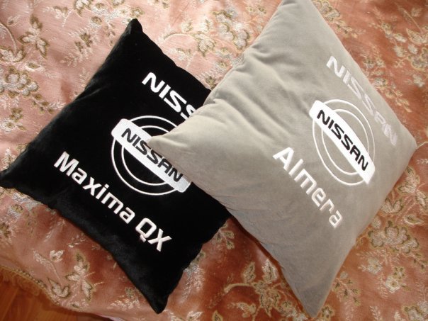 Вышивка может быть любой, от стандартных подушек с логотипов Вашего авто, до эксклюзивных клубных, и по индивидуальным эскизам.