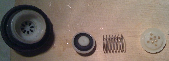 Все компоненты я отмыл и собрал обратно. Единственное что меня смутило, так это то, что даже после отмывки всех деталей уплотнительная резинка клапана №2 (показана стрелкой на фото 2) все же слегка прилипала к корпусу. Поэтому я решил немного укоротить возвратную пружину клапана №2 (фото 4) , тем самым понизив порог срабатывания клапана.