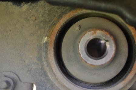 Перед запрессовкой наружную обойму СБ я смазал графиткой. Но идет все равно очень туго - резьба на болте в итоге потянулась, но свою задачу выполнила. Во время запрессовки следите чтобы СБ входил в балку без перекоса. В итоге СБ должен выступать из посадочного отверстия в балке ровно на 8 мм. ВНИМАНИЕ!!! НЕ ПЕРЕУСЕРДСТВУЙТЕ! Посадить его обратно ОЧЕНЬ сложно. если СБ будет выступать на другую величину, отличную от 8 мм, то будет постоянно испытывать неправильные нагрузки и очень быстро порвется.