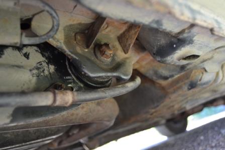 Подставляем домкрат под рычаг балки, и приподнимая его, вынимаем болт.