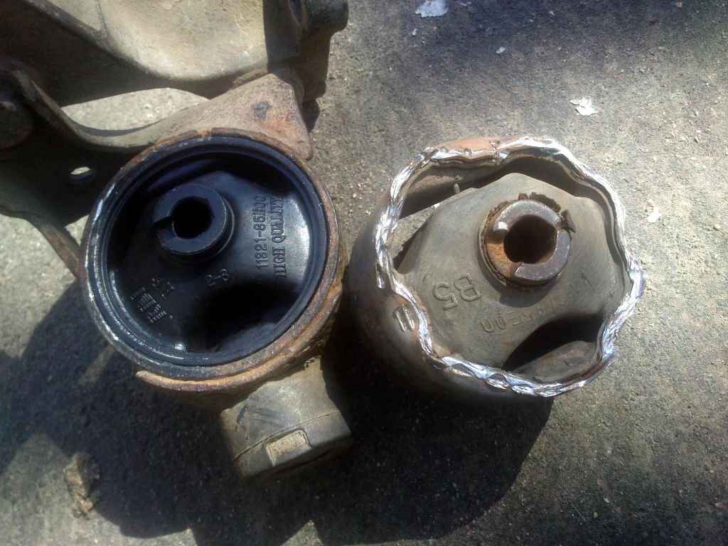 На очереди остальные три опоры, как себя поведут в будущем дам знать здесь. Вот что было и получилось. Это опора задняя левая, которая расположена возле МКПП.