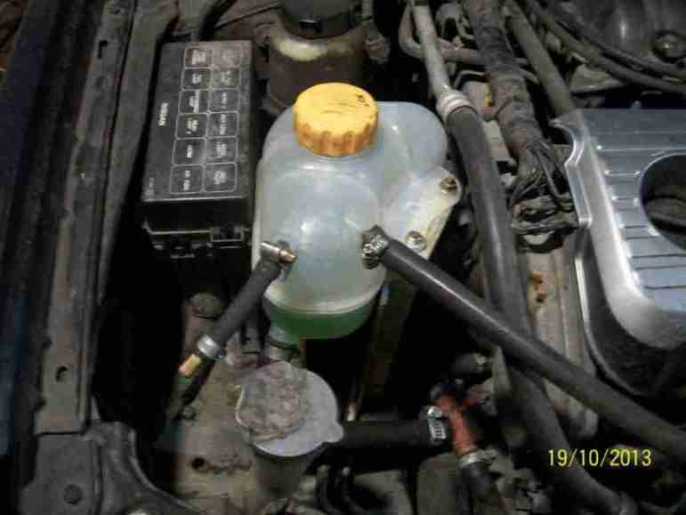 Теперь газы, которые поступают в радиатор из движка через верхнюю трубку из радиатора идут в расширительный бачок, а оттуда через клапан крышки в атмосферу.Помпа засасывает ож из радиатора и бачка уже без воздуха. Как временная мера - имеет право на жизнь