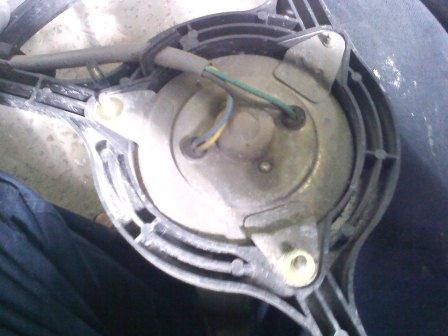 На данной фотографии хорошо виден мотор со снятой крыльчаткой, крыльчатку снимать аккуратно, т.к. она может быть "прикипевшей" к валу моторчика.
