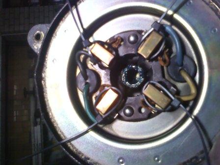 Сборка производится соответственно в обратном порядке. Вот собственно в принципе и всё. На втором моторчике единственное отличие - это отсутствие тепловой защиты и чуть другая форма крыльчатки. Ещё раз повторюсь - не забываем про тепловой зазор.