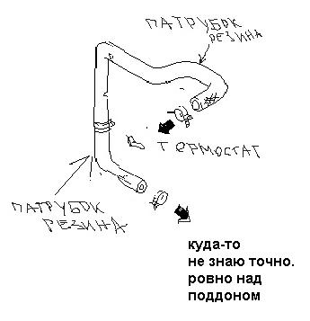 Вобщем выглядит так. Резиновый патрубок. диаметр - сантиметра 3. Там, где насаживается - есть - то ли в нее вставленная, то ли просто секция - более тонкая. Прямо на ремнями слева. А потом действительно уходит вниз. Но металлических секций на ней нет. Идет по нему антифриз.